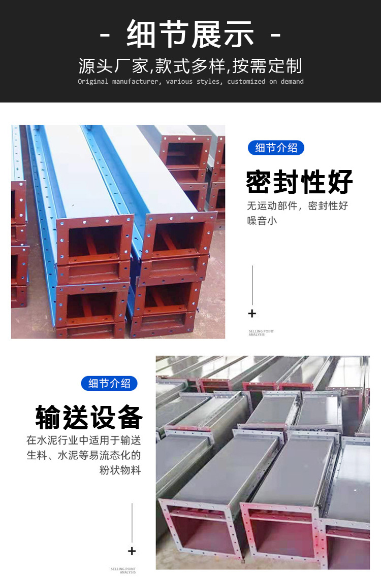 B200-B500空氣斜槽生產廠家,主要型號分別為:B200,B250,B315,B400,B500等;密封性能好,輸送產量大,可定制生產。