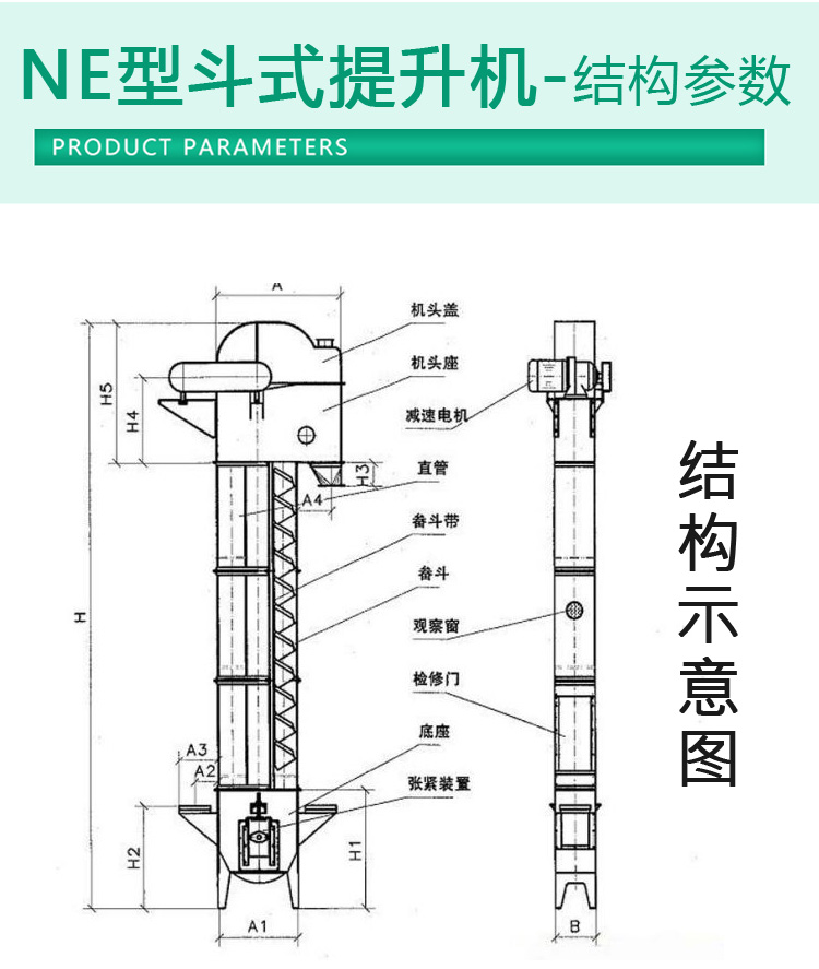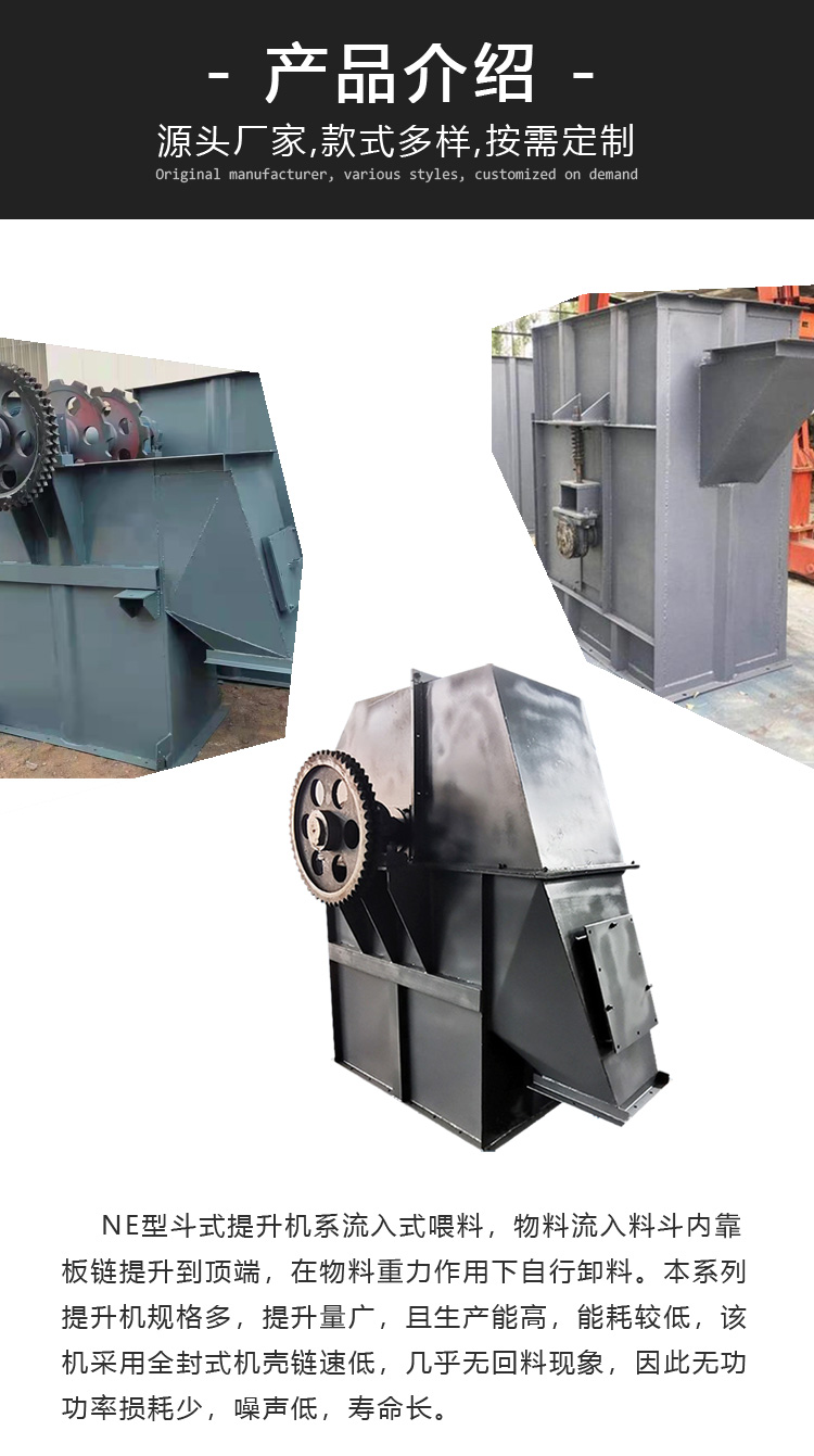NE型板鏈斗式提升機是一種常用于水泥、石灰、煤炭等物料的提升設備。密封性能好,環境污染少,易損件少,使用成本低。