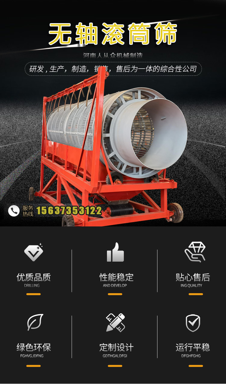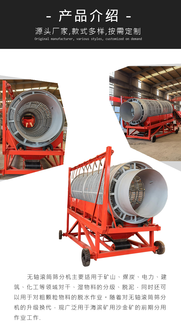大型可移動式雙層無軸滾筒篩大型沙場礦場煤炭礦石沙子篩分機篩石機