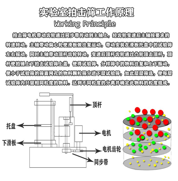 拍打式試驗(yàn)篩是一種實(shí)驗(yàn)室篩分機(jī),也稱為拍擊式試驗(yàn)篩,通常用于研究機(jī)構(gòu)或大學(xué)實(shí)驗(yàn)室的測(cè)試儀器。該振動(dòng)篩還可以配備各種固定裝置,這些固定裝置靈活、牢固,并且可以自動(dòng)停止。