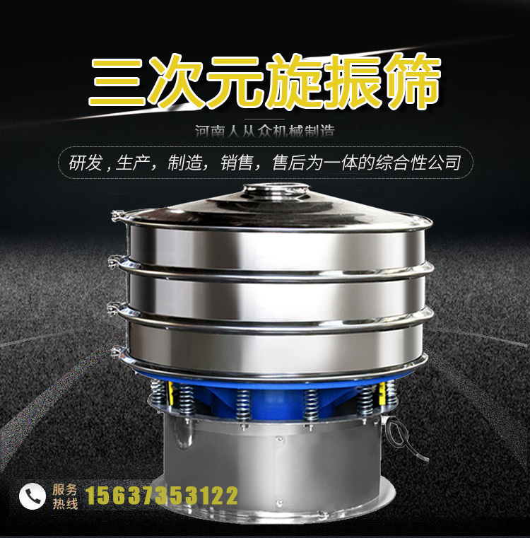 液體涂料振動篩啟動后,其動力裝置,即振動電機上端和下端具有不同相位的偏心塊,由于高速放置而產生復合慣性力。慣性力迫使篩機的振動體作復合旋轉運動,篩架在振動力的作用下作連續往復運動,驅動篩面周期性振動,使篩面上的物料與篩箱作定向跳躍式運動,在此期間,小于篩網表面孔徑的材料通過篩孔下降到下層,成為篩下物。大于篩面孔徑的物料在連續跳躍運動后從出料口排出,最終完成篩分工作。