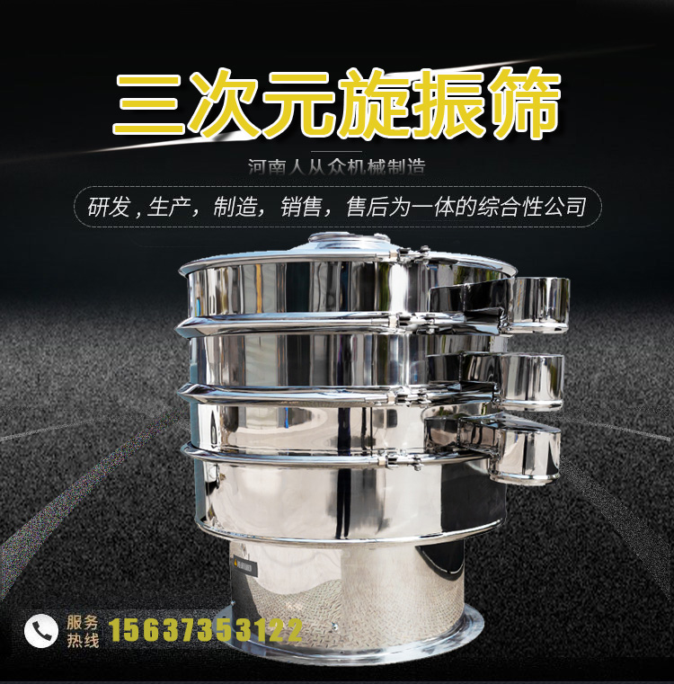 粉末顆粒振動篩的運(yùn)動軌跡是一條復(fù)雜的三維曲線。水平面上的投影是圓,在兩個(gè)垂直面上的投影是兩個(gè)相同的橢圓。通過調(diào)整振動電機(jī)上下端偏心塊的相對相位,可以改變物料在篩面上的運(yùn)動軌跡,從而達(dá)到不同的篩分目的;適用于面粉、淀粉等粉狀物料和各種顆粒狀物料的篩分。